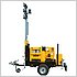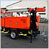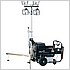Mobile Flutlichtanlage "Serie SOL 8000" in Bundeswehr- Ausführung mit sechs schwenkbaren Punktstrahlern (355°) jeweils 1500 Watt und 33.000 Lumen, Teleskopmast hydraulisch auf 9 Meter ausfahrbar, incl. automatischem Hydraulikaggregat. Flutlichtmast drehbar um 360°.