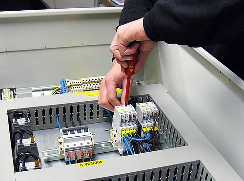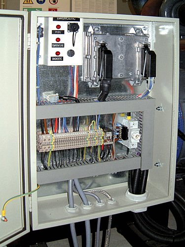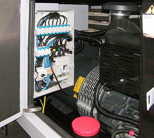 Abgestimmt auf die Notstromanlage des Kunden wird entsprechend die Elektronik in den Schaltschränken von uns aufgebaut. Vorgefertigt und vormontiert zum großen Teil in unserer hauseigenen Werkstatt, kommen der Netersatz- Schaltschrank und andere elektronische Bauteile vor Ort zum Einbau bzw. zum Anbau am Elektroaggregat.